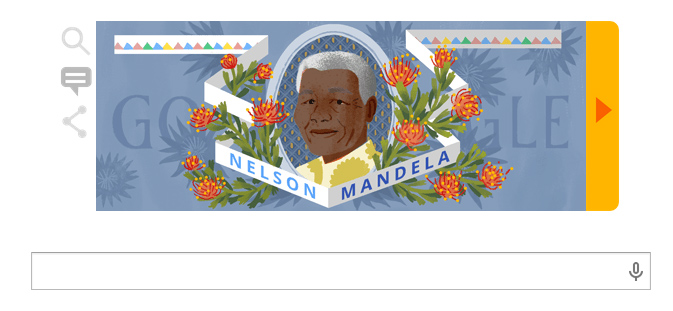 Dünyanın en büyük arama motoru Google, 20. yüzyılın en tanınmış siyasal tutuklularından ve ilk siyahi devlet başkanı olan Nelson Rolihlahla Mandela'yı anasayfasında taşıdı ve özel olarak doodle yaptı.