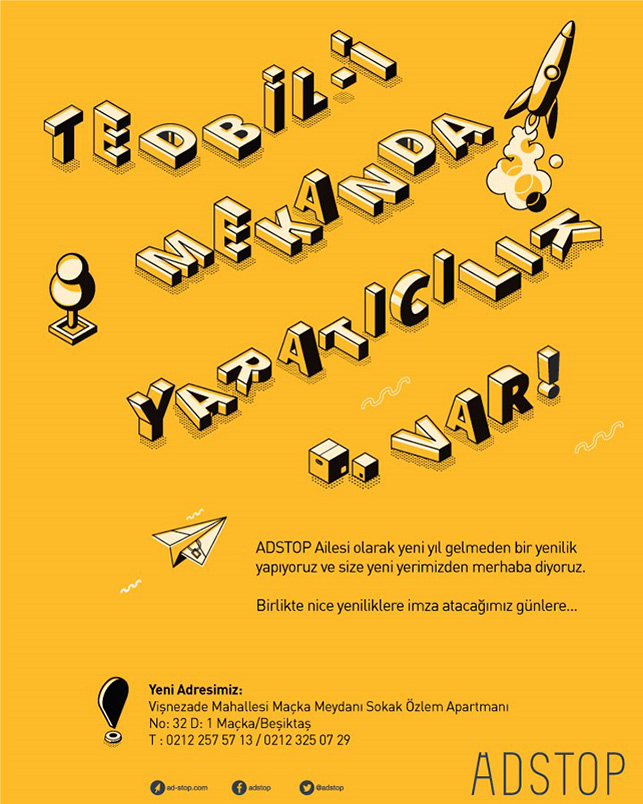 2001 yılında Ali Özbek tarafından kurulan tam hizmet ajansı AD-Stop taşındı.