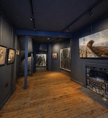 Sergi, Gallery Marquess’in yüz yıllık geçmişe sahip tarihî mekânını, radikal bir müdahaleyle dönüştürerek kuruluyor. Tüm yüzeylerin koyu renge boyanması, mekânın geçmişe ait tüm izlerini ve kimlik katmanlarını görünmez kılıyor, onu anonim ve nötr bir çevreye dönüştürüyor. Kendi kimliğini gizleyen mekân, artık içindeki çağdaş yapıtlara sessiz bir tanıklık sunuyor, “ne olduğunu” değil, “ne olabileceğini” soruşturan bir boşluğa dönüşüyor.
