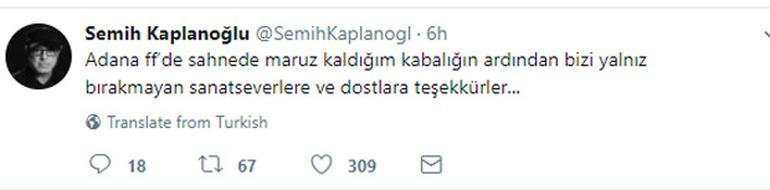 Adana ff’de sahnede maruz kaldığım kabalığın ardından bizi yalnız bırakmayan sanatseverlere ve dostlara teşekkürler...