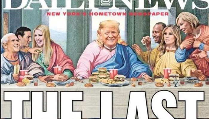 Tabloid gazete The New York Daily News, bu açıklamalara, Trump'ı Leonardo da Vinci'nin İsa peygamber ile havarilerini resmettiği 'Son Akşam Yemeği' tablosuna uyarlayarak yanıt verdi.